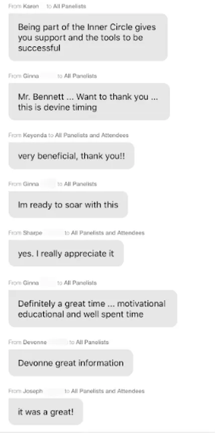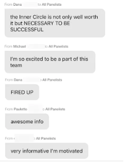 DISCLAIMER: Any results stated above are for each individual represented. Please understand results are not typical, we're not implying you’ll duplicate them (or do anything for that matter). The average person who buys any “how to” information gets little to no results because they simply do not implement the information. We're using these references for example purposes only. Your results will vary and depend on many factors …including but not limited to your background, experience, and work ethic. All business entails risk as well as massive and consistent effort and action. If you're not willing to accept that, please do not enroll.